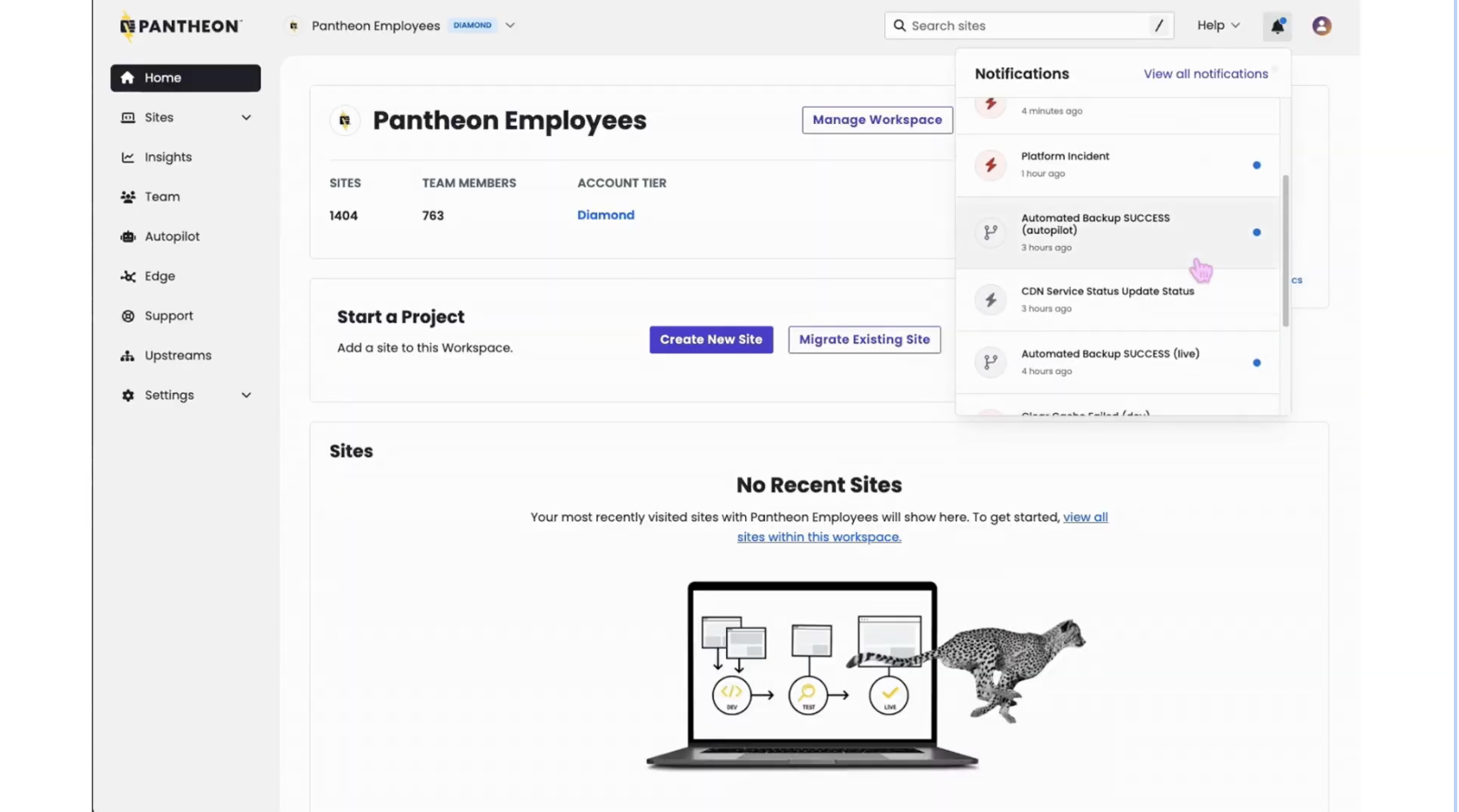 - Support Efficiency Tools: Updates to the Pantheon Dashboard to bypass tedious, repetitive tasks for Technical Support, Engineering, and Customer Success Managers, leading to quicker, more accurate customer answers.
