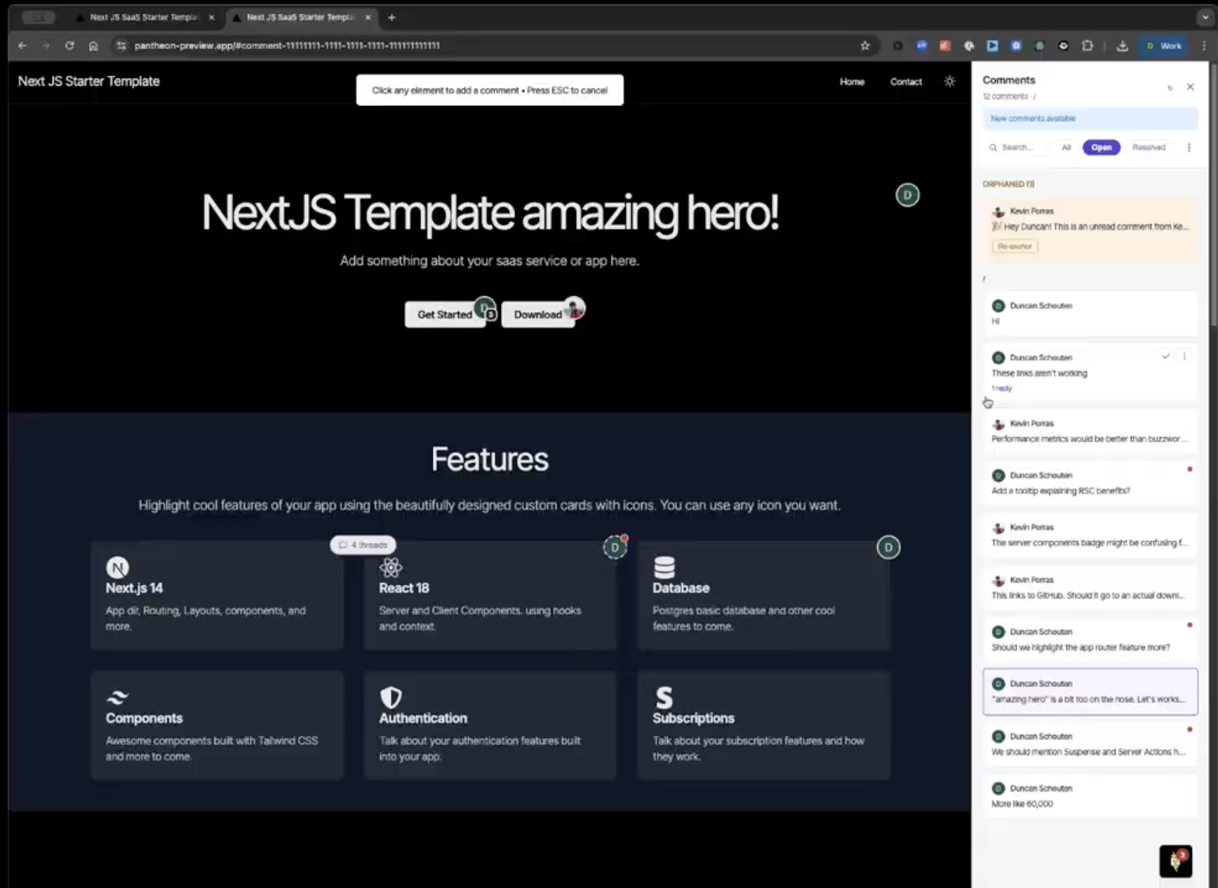 - What it does: Provides a Figma-like commenting experience directly on the live Multidev preview. Users can click on an element to leave contextual feedback.