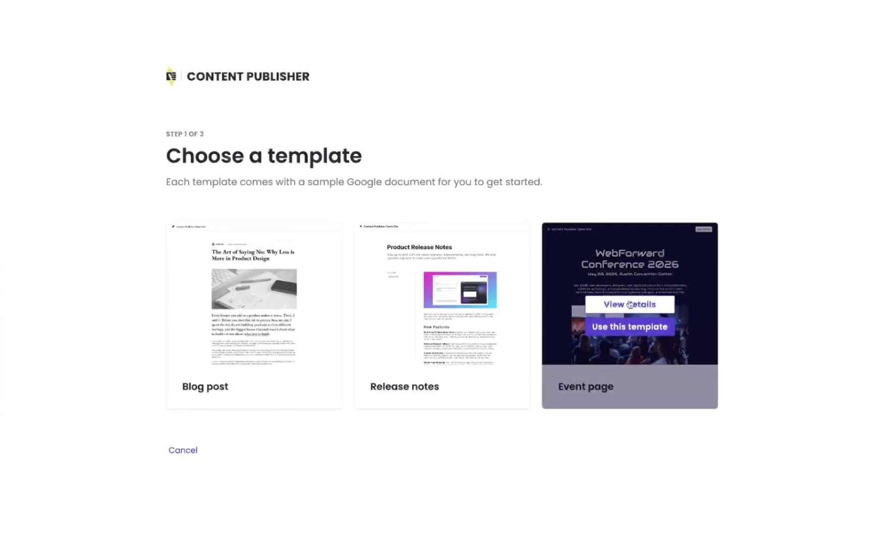 This innovation will create a fast, frictionless path to seeing Content Publisher in action.